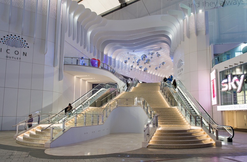 L’Arena est lovée au cœur du Millenium Dome qui incorpore un centre commercial haut de gamme tout autour de l’enceinte. C’est assez réussi même si un peu froid à mon goût.