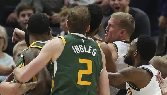 On est en fin de premier quart-temps quand Derrick Favors et Mason Plumlee se chamaillent sous le panier après un coup de sifflet des arbitres. Une action anodine qui fait finalement exploser les deux intérieurs, séparés tant bien que mal par leurs coéquipiers et les arbitres.