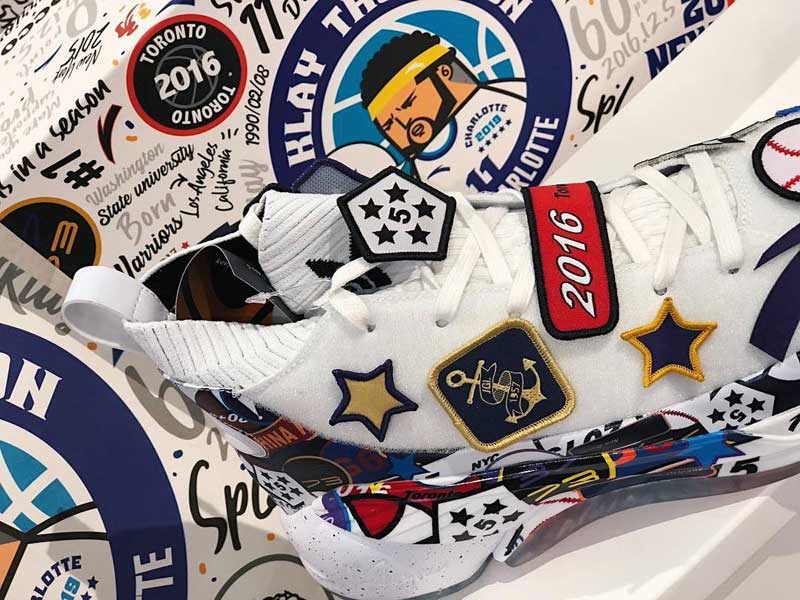 Bleacher Report a mis la main sur la KT4 que Klay Thompson portera pour le match des étoiles (s’il est sélectionné…), et elle ne manque pas de personnalité. Elle est recouverte de nombreux motifs, mais surtout de patchs amovibles, qui rappellent notamment les sélections précédentes du shooteur pour le match des étoiles.