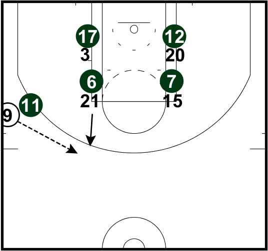 Pour recevoir la balle, Duncan ressort vers la ligne des trois points.