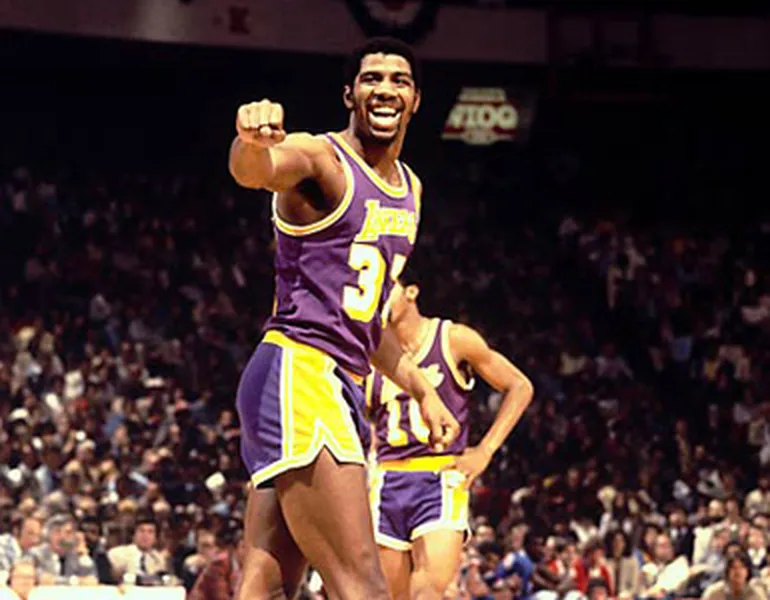Rares sont les images d'archives où on ne voit pas Magic Johnson avec la banane sur un terrain. Cette joie de vivre permanente, le meneur de légende des Lakers en a fait un art de vivre et savait la transmettre à ses coéquipiers. Par son attitude sur le terrain et sa soif de victoires, personne n'a pu opposer ce sourire permanent à une quelconque décontraction, comme cela a pu être reproché à Dwight Howard par le passé.