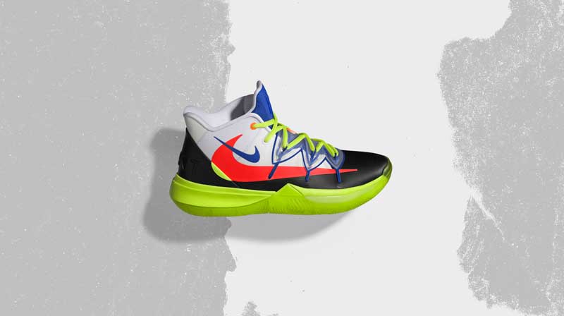 Pour Kyrie Irving, c’est en collaboration avec le label streetwear californien Rokit que la Kyrie 5 a été revue.
