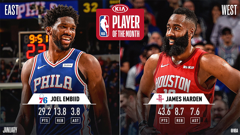 Côté Ouest, la NBA a privilégié l’exploit individuel puisqu’elle a désigné James Harden, auteur d’un mois de janvier exceptionnel avec 43.6 points, 8.7 rebonds et 7.6 passes par match, même si les Rockets n’ont remporté que 8 matchs sur 14. Il faut remonter à Kobe Bryant, voire Wilt Chamberlain, pour trouver trace d’un tel coup de chaud sur un mois.
