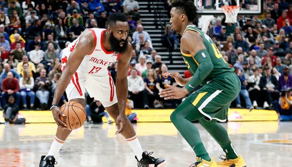 Son « stepback » de loin, malgré beaucoup de déchets, fait mal et ses attaques de cercle l’emmènent régulièrement sur la ligne des lancers, où il passe une soirée parfaite (15/15). Le public et les joueurs du Jazz s’agacent pourtant régulièrement durant la partie des coups de sifflet obtenus par James Harden. Ce dernier sanctionne également, et étonnamment, sur de très rares « jumpers » à mi-distance. À la pause, il approche déjà des 30 points au compteur, et il n’aura aucune difficulté à réussir son 26e match de suite avec 30 points ou plus, se rapprochant un peu plus de Wilt Chamberlain.