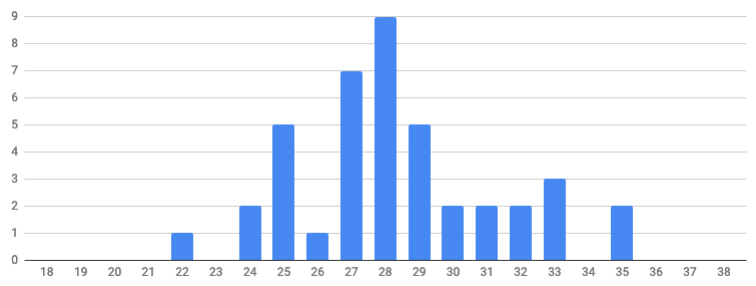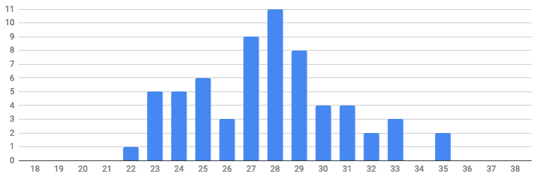 En fait, on voit que c’est à 28 ans que les joueurs reçoivent le plus le trophée de MVP. Ils sont ainsi 11 à l’avoir reçu à cet âge de pleine maturité physique et psychologique : Bob Cousy (1957), Bill Russell (1962), Moses Malone (1983), Larry Bird (1985), Michael Jordan (1991), Shaquille O’Neal (2000), Dirk Nowitzki (2007), LeBron James (2013), Stephen Curry (2016), Russell Westbrook (2017) et James Harden (2018). On remarque d’ailleurs que ce fut le cas des trois derniers MVP…