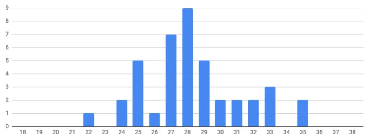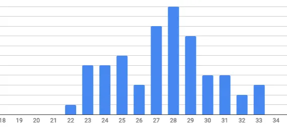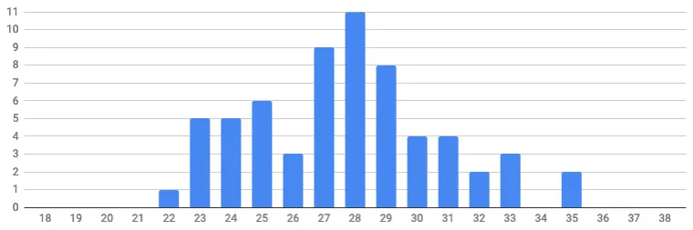 En fait, on voit que c'est à 28 ans que les joueurs reçoivent le plus le trophée de MVP. Ils sont ainsi 11 à l'avoir reçu à cet âge de pleine maturité physique et psychologique : Bob Cousy (1957), Bill Russell (1962), Moses Malone (1983), Larry Bird (1985), Michael Jordan (1991), Shaquille O'Neal (2000), Dirk Nowitzki (2007), LeBron James (2013), Stephen Curry (2016), Russell Westbrook (2017) et James Harden (2018). On remarque d'ailleurs que ce fut le cas des trois derniers MVP…
