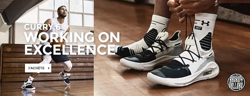 Commandez sur B4B la UA Curry 6 qui intègre le nouvel amorti UA HOVR™ sur toute la longueur pour un retour d’énergie dynamique et une sensation zéro gravité