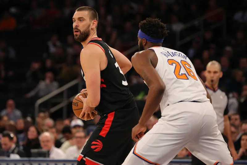 Au début du deuxième quart-temps, Gasol reçoit un ballon au coeur de la défense, un petit hook shot, et il fait mouche pour son premier panier avec les Raptors (27-25). Clairement, Toronto a du mal. Le hourra basket des Knicks les gêne, et notamment Kevin Knox très efficace pour prendre les intervalles et frapper à mi-distance (32-30). Les deux formations ne se lâchent pas d'une semelle, et les Knicks offrent clairement un meilleur visage que ces dernières semaines. Smith Jr est plus discipliné et Jordan en impose sous les panneaux.
