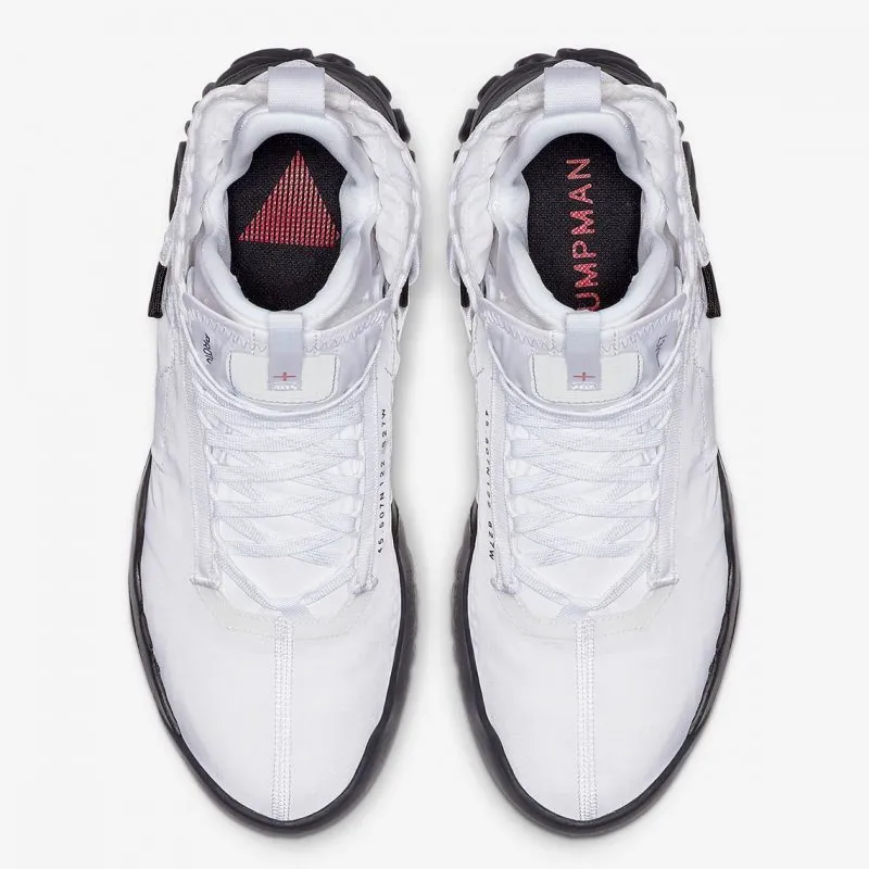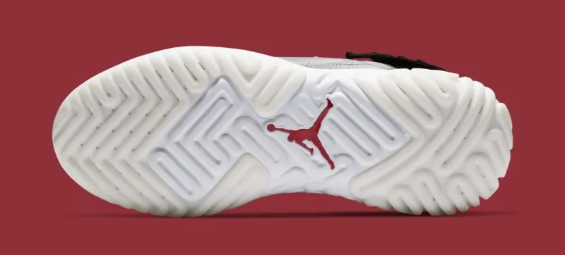 Après la Apex Utility, Jordan Brand dévoile une nouvelle chaussure visiblement dédiée au lifestyle, dans une silhouette encore inédite pour la marque, faite d'une tige en nylon, aux coutures apparentes, un strap ajustable au niveau du talon et un système de laçage qui entoure la cheville.