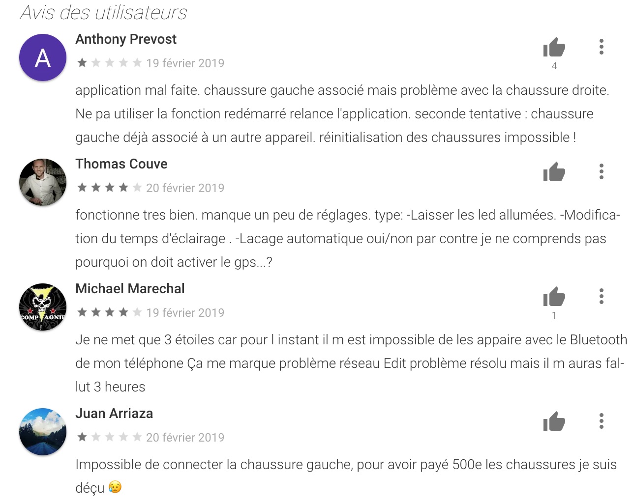 Sous iOS (iPhone), a priori, pas de problème pour serrer et desserrer sa chaussure à l’aide de l’application. Pour Android, c’est donc plus compliqué et PC World rapporte qu’un acheteur a réussi à débloquer sa chaussure en utilisant l’iPhone de sa femme…