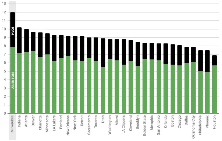 Depuis le début de la saison, les amateurs de stats avancées sont face à un paradoxe. Milwaukee, la meilleure défense de NBA avec 103.4 points encaissés sur 100 possessions, est l’équipe qui autorise le plus de shoots à 3-points (35.5 tentatives adverses par match), une bonne partie d’entre eux (11.9) étant «ouverts» ou «très ouverts».