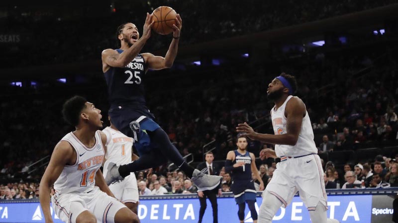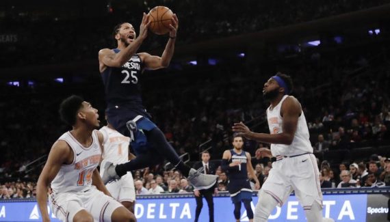 Sous son impulsion, New York s’est mis sur de bons rails en premier quart-temps (33-29), malgré une défense sur pick-and-roll trop souple et trop large. Plus sérieux défensivement en début de deuxième quart-temps, les Wolves imposent leur cadence et c’est Anthony Tolliver qui valide ces bons passages avec des tirs extérieurs. Il participe aussi activement aux bonnes séquences défensives des joueurs de Ryan Saunders, privés de leur leader Karl-Anthony Towns.