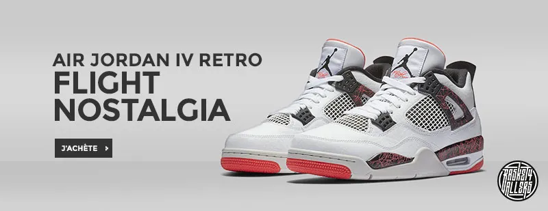 Commandez sur B4B la Air Jordan 4 Flight Nostalgia célébrant le 30e anniversaire du modèle en arborant une finition émaillée de taches de peinture sur la semelle intermédiaire ainsi que des touches de couleur vive.