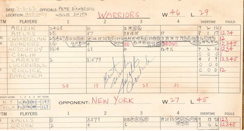 Le dernier vestige de ce match de légende se trouve donc être la feuille de marque. Bien caché pendant des années, peu d’informations circulaient autour de ce papier. On pouvait seulement obtenir quelques détails dans l’excellent livre de Gary M. Pomerantz, Wilt, 1962 : The Night of 100 Points and the Dawn of a New Era, publié en 2005.