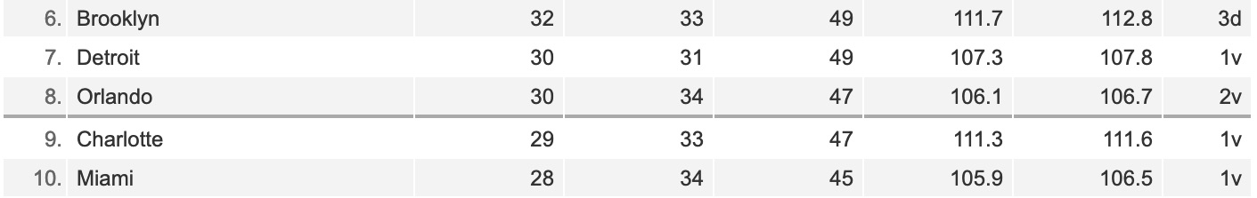 Pour l’instant, il n’y a pas péril en la demeure mais la 6e place tient à un fil avec les Pistons qui reviennent fort. Le Magic, vainqueur des Pacers, n’est pas très loin, tout comme les Hornets et le Heat.