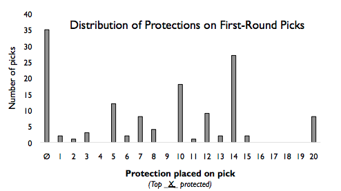 L’idée, c’est que les protections lors des échanges de choix de Draft sont généralement placées jusqu’aux places 5, 10 et 14 et que certaines protections sont trop élevées par rapport à la valeur réelle du choix, et d’autres pas assez.