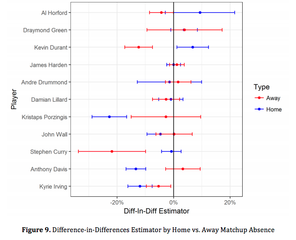 La place de Kevin Durant peut interroger car les places sont plus chères quand il n’est pas là. C’est que ses absences font augmenter le prix des places à domicile, mais le font baisser à l’extérieur…