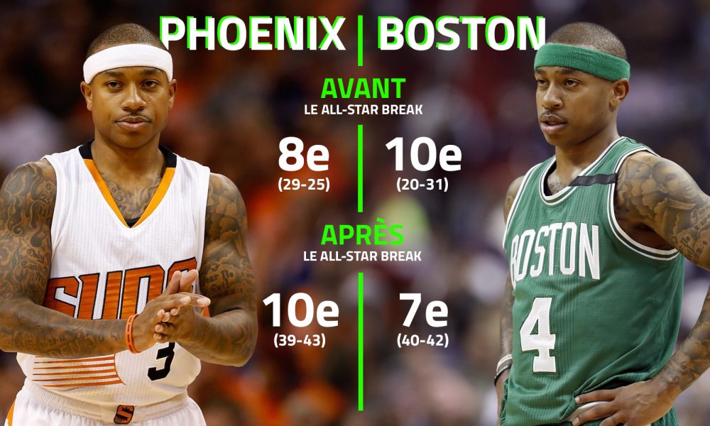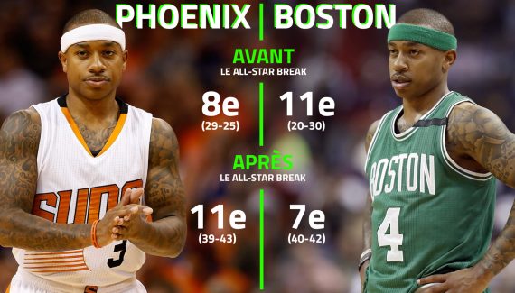 Mi-février 2015. Les Suns sont 8e avec un bilan de 29-25, les Celtics 10e à l’Est à 20-31. Le 15 avril suivant, date de la fin de la saison régulière, les premiers ne sont plus que 10e (39-43), les seconds sont en playoffs (7e, 40-42). Le dénominateur commun à ces deux retournements de situation a un nom : Isaiah Thomas, transféré de Phoenix à Boston avant la trade deadline.
