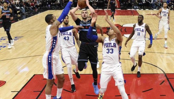 98-88. Moins de six minutes à jouer. Les Sixers ont enfin réussi à faire le break, et on voit mal comment les Bulls vont réagir. D’autant que le tempo est lent, et que Philly a bien la main sur le match. C’est le moment choisi par Zach LaVine pour prendre feu. Certes, Ben Simmons et TJ McConnell ne défendent pas dur, mais l’arrière des Bulls agresse la défense et ça marche. Avec style, comme sur ce 3-points dans le corner pour ponctuer un 7-0 en une minute.
