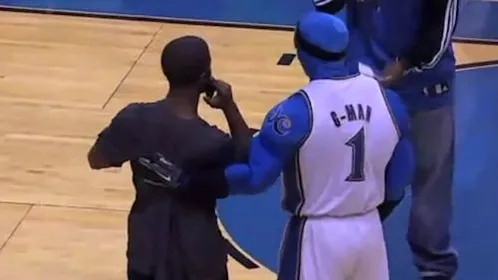 La scène se passe lors du récent Washington-Boston. La mascotte des Wizards invite plusieurs spectateurs à venir dunker avec un trampoline. Le dernier à s'élancer prend son téléphone… et on vous laisse découvrir la suite.