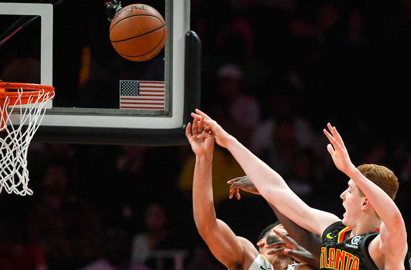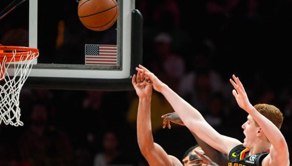Trae Young est en galère face à la défense agressive de la ligne arrière adverse, et tout le jeu des locaux s’en ressent. Mais le salut vient de l’autre rookie, Kevin Huerter, qui décide de prendre le jeu à son compte et aide les siens à rester dans le coup (42-34). Le sosie de Paul Scholes prend feu, et tout son registre offensif est exposé au grand jour : lay up en transition, tirs à mi-distance et quelques shoots longue portée depuis le parking, le numéro 3 d’Atlanta explose les compteurs pour ramener les siens dans le match (48-48).