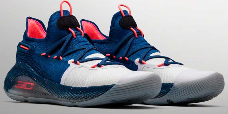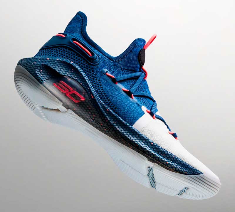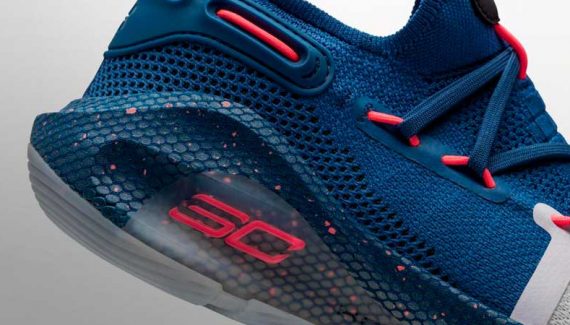 Voilà pourquoi des confettis tombent sur la semelle, sous un bleu qui rappelle les Warriors. Under Armour ne précise pas s’il s’agit de célébrer les titres précédents ou bien d’annoncer le suivant.