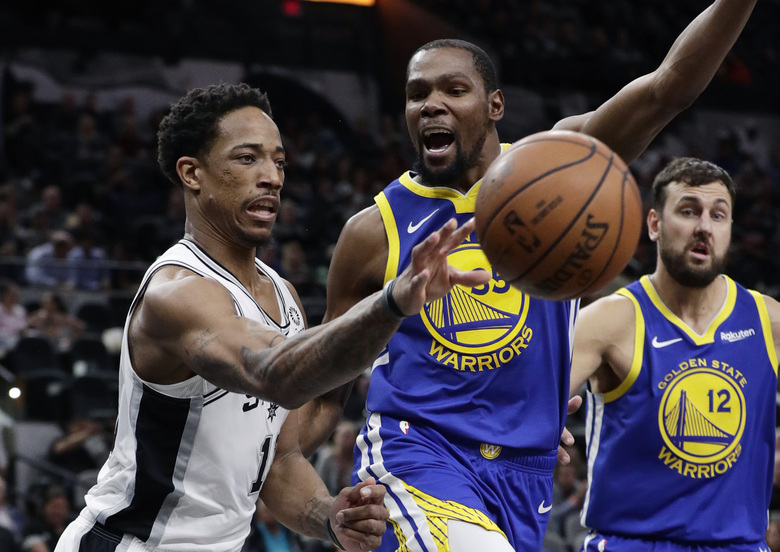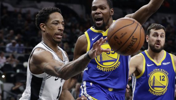 À l’instar des derniers instants du troisième quart-temps, les Spurs profitent d’un passage à vide de Golden State, marqué par deux ballons perdus de Klay Thompson et une faute de Durant sur un tir à trois points de Bellineli, pour doubler leur avance. Alors que San Antonio manque l’occasion de faire le trou, Thompson (14 points) règle la mire et marque onze points de suite pour garder les Warriors en embuscade (96-91). DeMar DeRozan prend alors ses responsabilités en enchainant les tirs à mi-distance malgré une défense pot de colle de Thompson pour remettre les Warriors à -9 mais Kevin Durant se réveille. Servi poste bas trois fois de suite face à Bertans, il marque sept points pour faire douter l’AT&T Center (106-102).