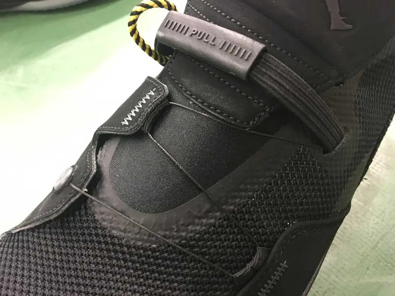 La poche sous l’avant du pied fait toujours son petit effet. Dommage que le côté massif de la semelle et la rigidité de l’ensemble réduisent à la fois la réactivité et le court feel. Il y a aussi une poche sous le talon, mais on ne la sent pas vraiment.
