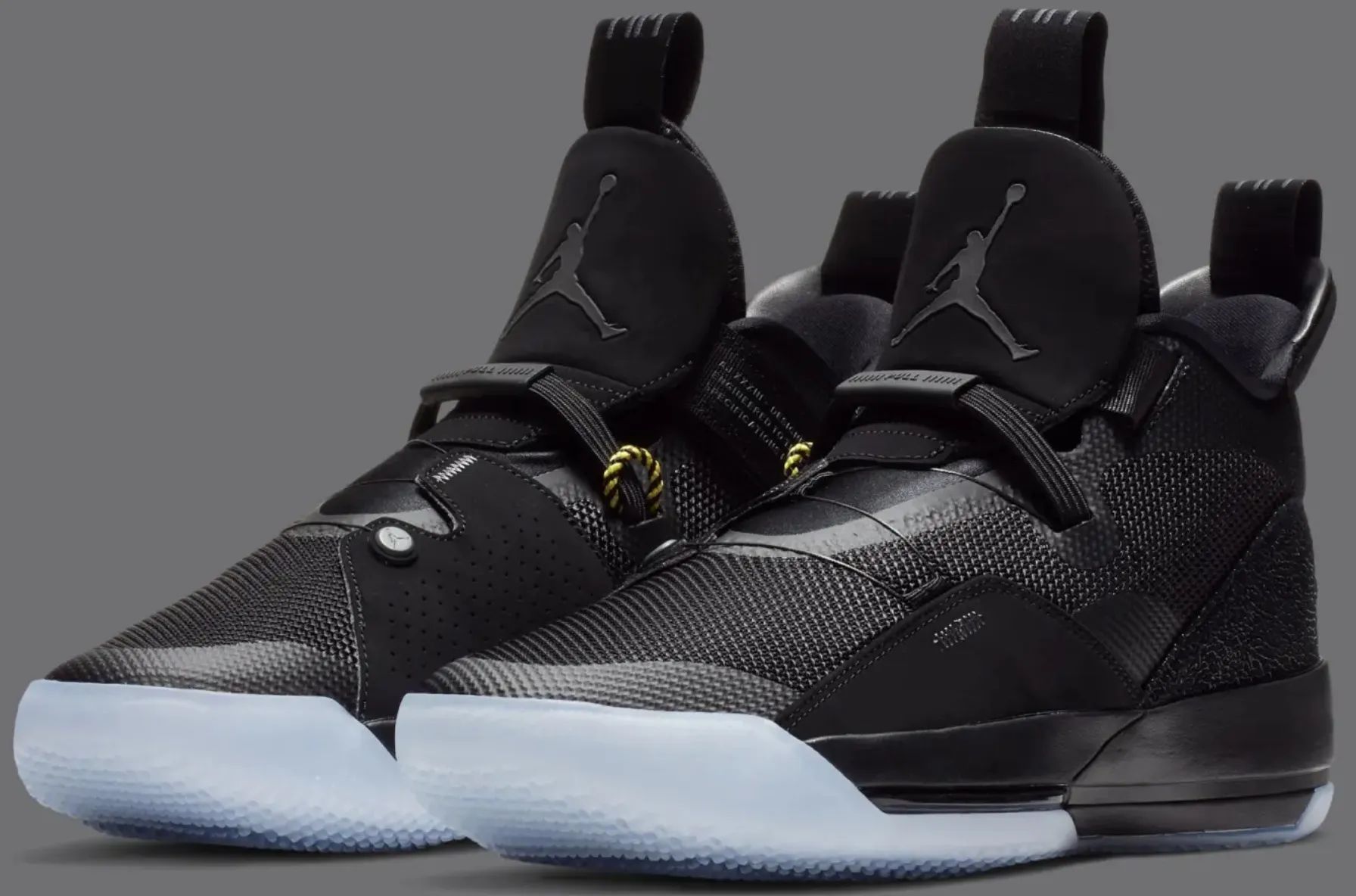 Après une Jordan 32 équilibrée, la marque aux Jumpman a décidé de tenter de nouvelles choses. La nouveauté principale sur la numéro 33, ce sont des câbles, actionnés par une sangle unique à tirer. De quoi alimenter la partie marketing.