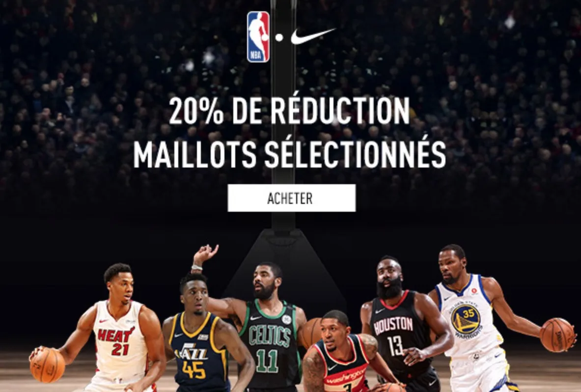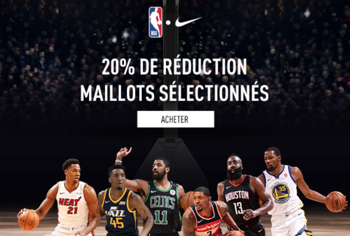 - Maillot Nike Icon Swingman à partir de 70,40 euros (au lieu de 88 euros) ;
