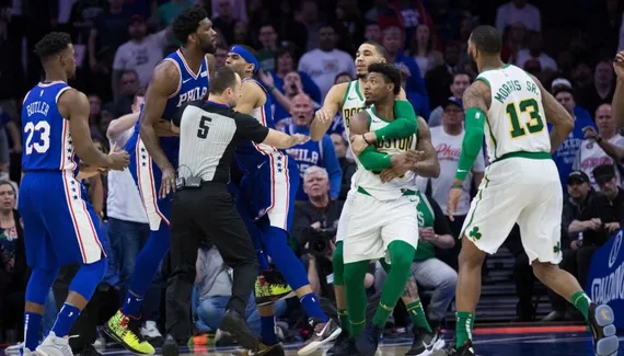 Le début de deuxième mi-temps est marqué par une embrouille entre Joel Embiid et Marcus Smart : après un coup de sifflet litigieux, le Celte reçoit un écran solide du Camerounais et se venge en le poussant. Les deux hommes sont séparés avant que les coups ne pleuvent, mais Smart est expulsé. Deuxième coup dur pour Boston.