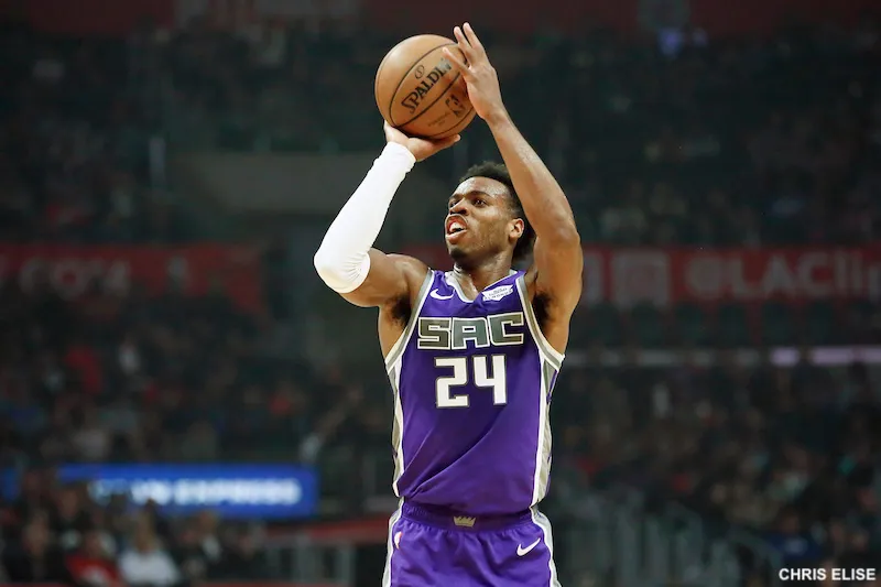 /https%3A%2F%2Fwww.basketusa.com%2Fapp%2Fuploads%2F2019%2F03%2Fhield-shoot.jpg) Voilà une statistique qui en dit long sur le potentiel de Buddy Hield. En 2004, Peja Stojakovic, légende de la franchise californienne, avait établi un record de franchise avec 240 paniers à 3-points inscrits sur une saison.
