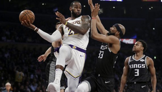 Le match est agréable à regarder avec deux équipes qui n’ont plus rien à jouer. Buddy Hield fait apprécier son adresse lointaine, tandis que LeBron joue relâché (13-10). Chez les Kings, Marvin Bagley pose déjà de gros problèmes par sa mobilité et son adresse de loin. Le numéro 2 de la Draft donne l’avantage sur un service de Corey Brewer, mais Kuzma lui répond à 3-points pour donner l’avantage aux Lakers après douze minutes (22-20).