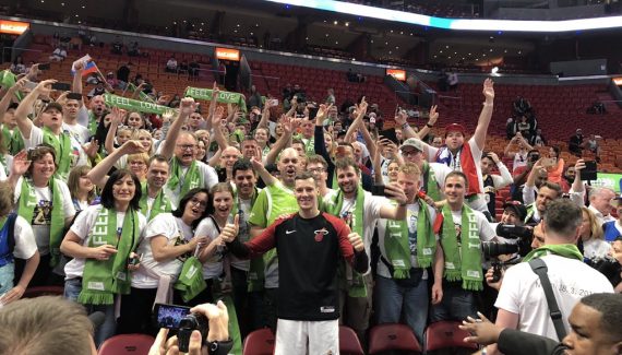 Miami, « capitale » de la Slovénie cette nuit. « C’est comme si nous étions à Ljubljana », confirme Erik Spoelstra. Le Heat-Mavs a donné lieu au premier duel entre les deux compatriotes, Goran Dragic et Luka Doncic. Ils n’étaient pas les seuls représentants de leur pays dans l’American Airlines Arena car au moins 2 000 supporters slovènes avaient fait le déplacement.