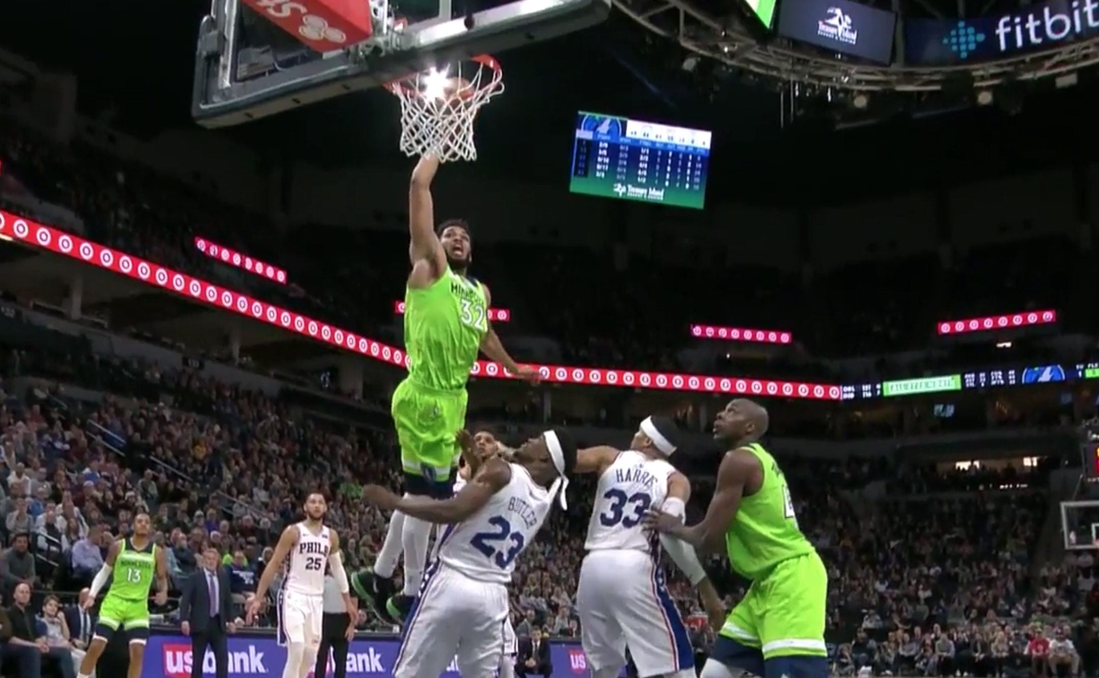 Sur le terrain, Jimmy Bucket s’est d’abord signalé avec un alley-oop raté et une alerte au dos, vite effacée par un 3-points. Le reste de sa prestation, conclue par un 4/17 aux tirs, mais aussi 13 rebonds et 5 passes, aura été marquée par un gros contre de Karl-Anthony Towns sur son ancien camarade, qui a ensuite manqué de peu de le coller sur le poster de l’année.