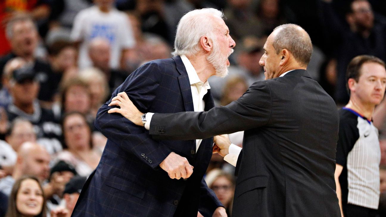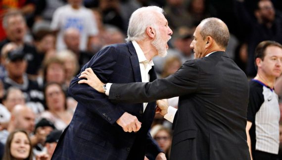 Une faute offensive est sifflée, ce qui ne ravit personne à San Antonio. Gregg Popovich explose quelques secondes plus tard quand les officiels donnent la remise en jeu aux Kings alors que c’est Harrison Barnes qui touche le ballon en dernier. L’entraîneur est retenu par ses assistants et ses joueurs avant de filer aux vestiaires, et les Spurs perdront le match derrière.