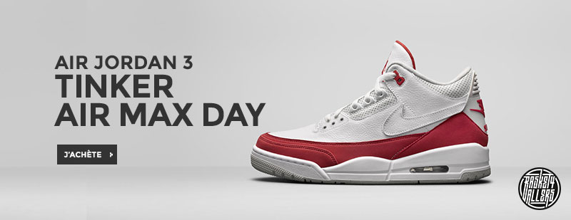 À l’occasion du Air Max Day, deux des silhouettes les plus admirées de Tinker Hatfield s’unissent dans une Air Jordan III « Tinker » inspirée de la Air Max 1. Commandez-la sur B4B.