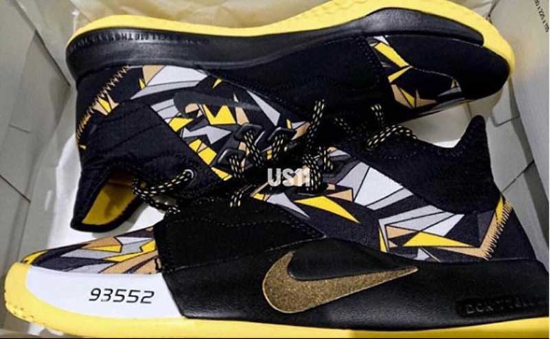 La PG3 évoque un peu plus les Lakers, puisque la base noire est accompagnée par des accents jaunes et un joli motif, qui rappelle légèrement celui de la teinte originale de la Kobe 8.