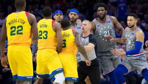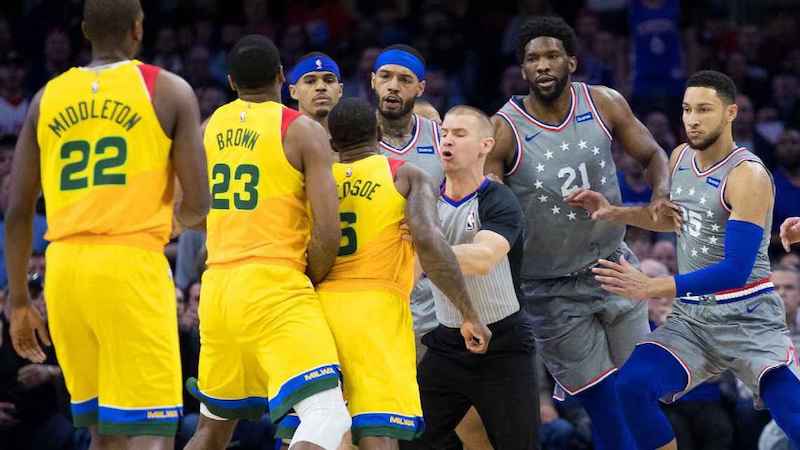 Au départ, un écran retard de Joel Embiid. Eric Bledsoe le repousse. Joel Embiid lui balance la balle. Eric Bledsoe la lui renvoie en plein torse, et après cette partie de ballon-prisonnier, c’est l’escalade.