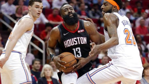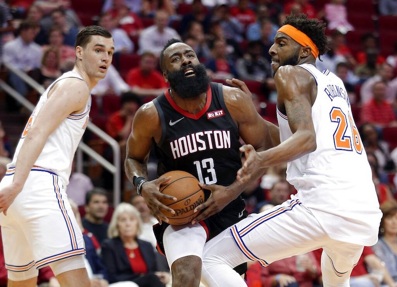 Iman Shumpert se montre enfin, et Chris Paul plante un nouveau 3-points, devant les bras immenses de Mitchell Robinson. Après douze minutes, il y a déjà 32-16. Et le carnage continue avec un James Harden impressionnant de facilité.