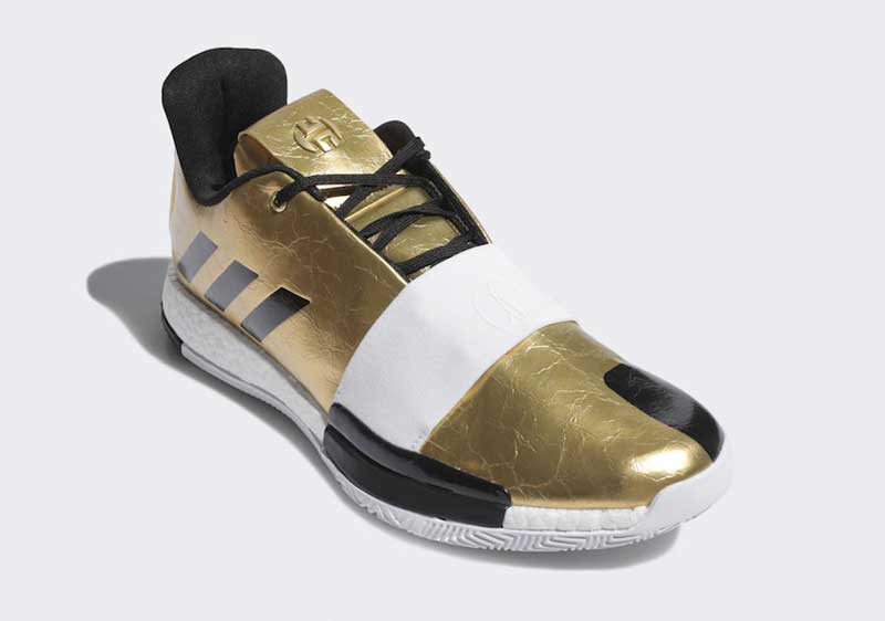 Sur la Harden Vol.3, adidas et le joueur des Rockets ont donc décidé de l’affirmer : “Imma Star” ! L’orthographe souffre, mais le message est là. Et quoi de mieux pour une star que de l’or.