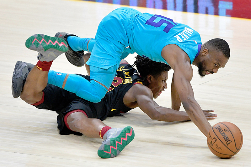 Charlotte donne le ton en faisant tomber la pluie derrière la ligne à 3-points. Dwayne Bacon par trois fois, Miles Bridges, Nicolas Batum et Kemba Walker plombent l’ambiance à grand coups de missiles qui propulsent déjà les hommes de James Borrego à +12 (11-23). La soirée s’annonce longue mais Brandon Knight, Collin Sexton, Cedi Osman et Jordan Clarkson réveillent l’assemblée en répondant avec brio dans le même exercice pour égaliser à 27-27. Jeremy Lamb apporte ce second souffle en scorant six points de suite pour boucler le premier acte et revoilà les Hornets repartis de plus belle.