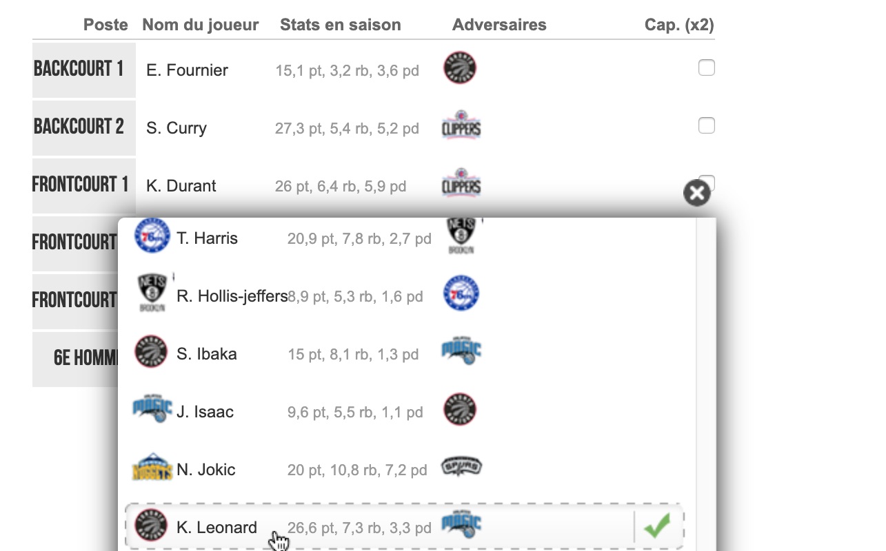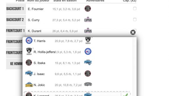 En playoffs aussi, la Fantasy League est présente, et on reste uniquement sur la formule Hardcore ! Pas de budget. Pas d’effectif figé pour une semaine puisque chaque soir, vous pouvez changer votre effectif en fonction des matches prévus. On retrouve les principes de notre Fantasy annuelle avec chaque soir la possibilité de créer votre équipe composée d’un cinq majeur, épaulé d’un 6e homme. Vous pouvez préparer votre équipe sur quatre jours.