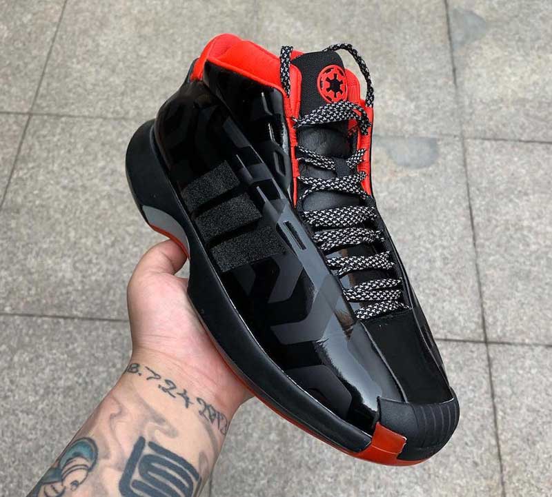 Les adeptes de la saga noteront que c’est donc le logo de l’Empire de Darth Sidious et Darth Vader qui est à l’honneur. Kylo Ren et le Premier Ordre n’ont visiblement pas convaincu la marque aux trois bandes pour le moment. À moins que d’autres coloris soient dans les cartons ?