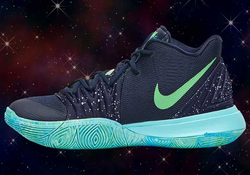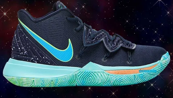 On ne sait pas si Kyrie Irving a vraiment cru un jour que la terre était plate, et on sait encore moins s'il croit à une vie extraterrestre, mais l'espace est bien le thème du nouveau coloris de sa chaussure signature.