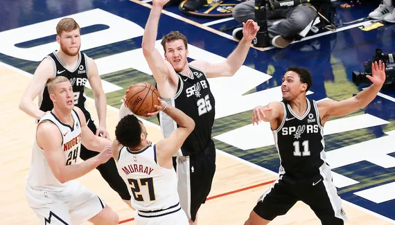 Après plus de deux minutes sans point en début de match, les Spurs en enfilent six de suite alors que Denver manque ses cinq premiers tirs. Ça permet à San Antonio d'installer son système tranquillement, sans paniquer, et de mettre la pression d'entrée sur les Nuggets, à l'image d'un Jamal Murray qui rate un dunk tout cuit.