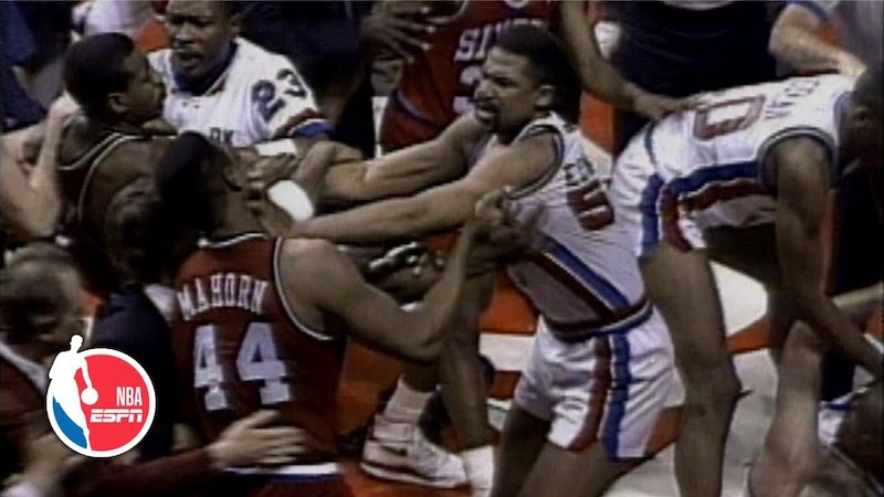 Le match, remporté par les Sixers (107-97) est physique alors même qu’il est de coutume de s’économiser avant les playoffs. Mais les Pistons, champions en titre, sont détestés de tous, et les deux équipes vont même en venir aux mains. Isiah Thomas est même expulsé à quatre minutes du terme pour avoir frappé au visage son ancien coéquipier Rick Mahorn !