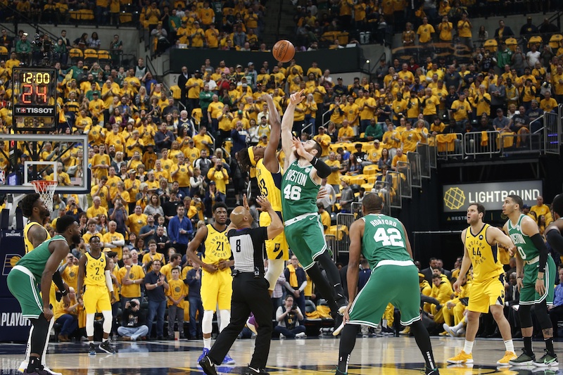 Bojan Bogdanovic se lamentait après le Game 3 de voir son équipe menée 2-0 et encaisser quand même 40 points dans le premier quart-temps. Mais ça commence encore mal cette fois-ci pour les Pacers, menés 3-0 désormais, qui prennent un 8-0 en 90 secondes. Le tir pris par Myles Turner en sortie de temps-mort n’est pas beau, mais Indy empêche Boston de marquer sur les six possessions suivantes et enfile tranquillement un 13-0 ! La guerre de tranchées se met en place, mais avec déjà six ballons perdus, Boston reste derrière après 12 minutes malgré la belle agressivité de Gordon Hayward, “born and raised” à Indianapolis (23-21).