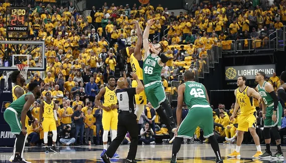 Bojan Bogdanovic se lamentait après le Game 3 de voir son équipe menée 2-0 et encaisser quand même 40 points dans le premier quart-temps. Mais ça commence encore mal cette fois-ci pour les Pacers, menés 3-0 désormais, qui prennent un 8-0 en 90 secondes. Le tir pris par Myles Turner en sortie de temps-mort n'est pas beau, mais Indy empêche Boston de marquer sur les six possessions suivantes et enfile tranquillement un 13-0 ! La guerre de tranchées se met en place, mais avec déjà six ballons perdus, Boston reste derrière après 12 minutes malgré la belle agressivité de Gordon Hayward, “born and raised” à Indianapolis (23-21).