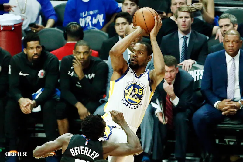 Doc Rivers n'a d'autre choix que d'envoyer son chien de garde Patrick Beverley sur lui, en plus de prises à deux de plus en plus agressives. Mais Durant poursuit sur sa lancée tandis que Curry continue d'être ciblé par la défense adversaire. Les tentatives de trappes récurrentes permettent à Draymond Green, particulièrement inspiré ce soir et dans tous les secteurs du jeu, d'être ouvert pour envoyer Livingston ou Looney vers le « alley oop ». Très bon lui aussi, Andre Iguodala est décisif dans cette partie.